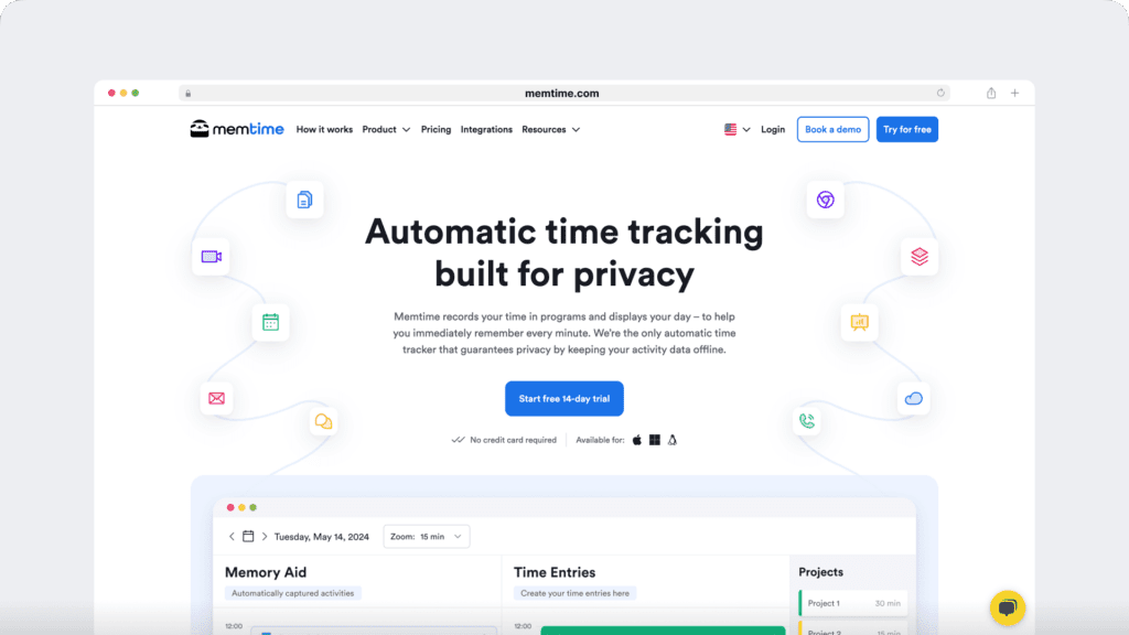 Memtime automatically tracks time in the background without manual input.